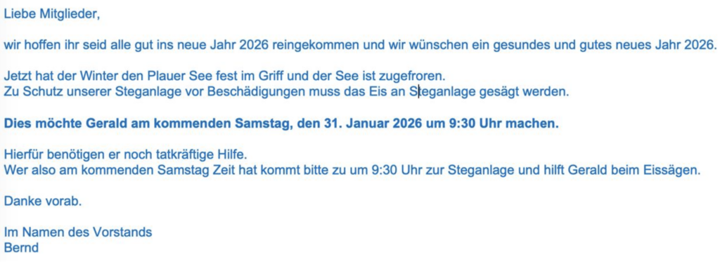 Wir möchten über die Termine für 2025 informieren und an die Zahlung der Jahresbeiträge erinnern.
